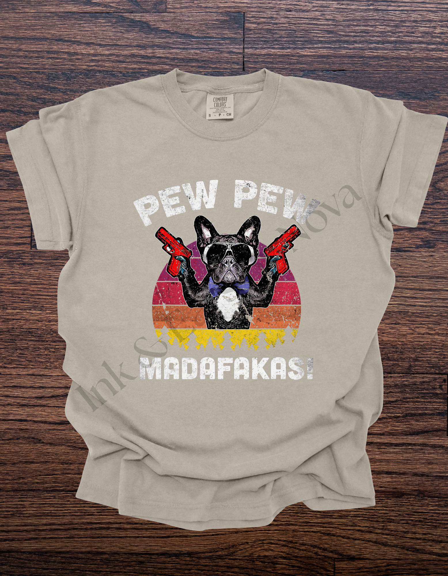 The Pew Pew Frenchie Tee is a made-to-order unisex cotton shirt that offers a true-to-size fit for all-day comfort. Available in both Comfort Colors and Gildan soft style options, this tee features a humorous French bulldog design, combining casual style with a playful touch. Ideal for Frenchie lovers seeking a cozy and personalized wardrobe staple.